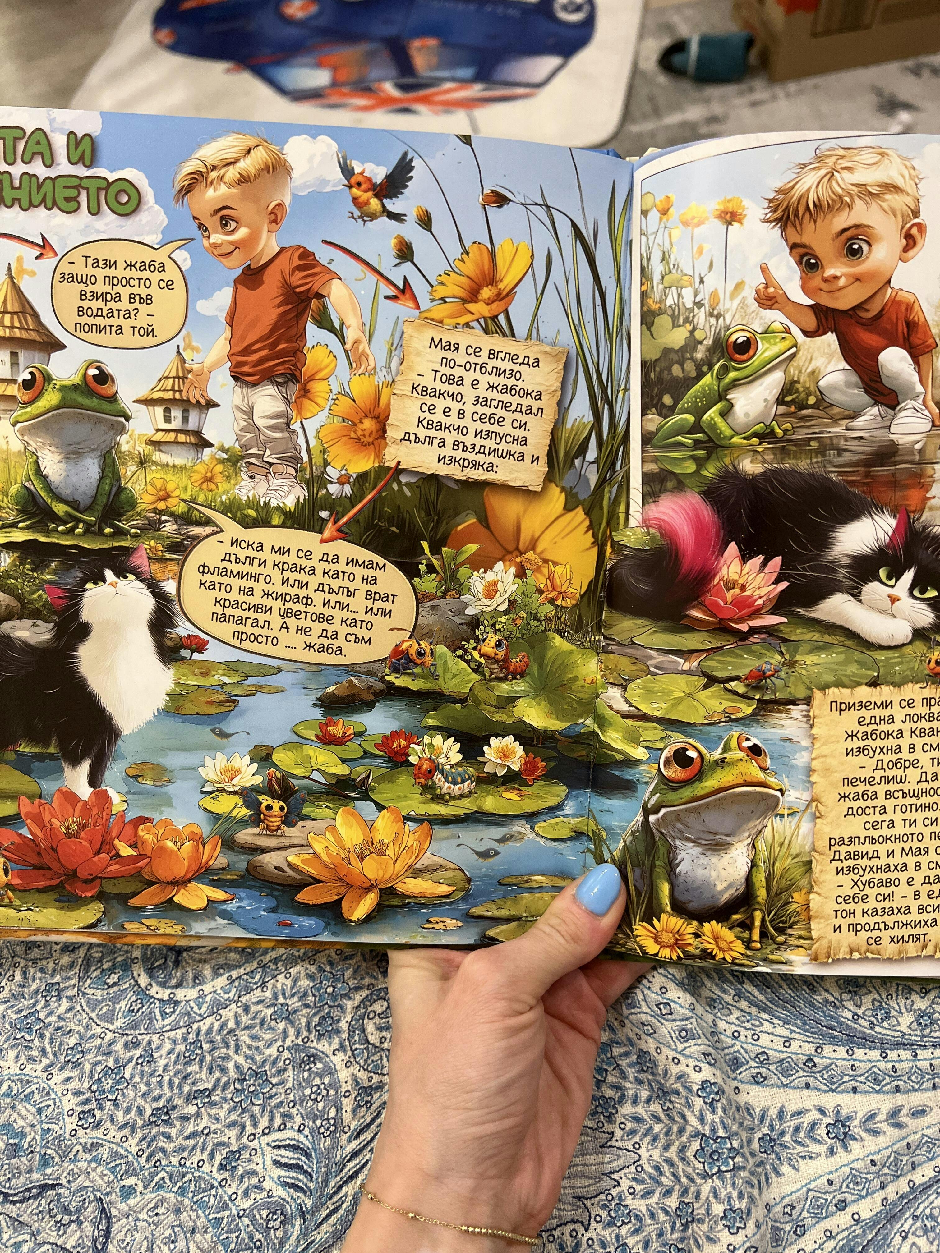 Едно чудесно приключение на Мая и Давид! Цветно, забавно и интересно! Една невероятна възможност на децата да развиват своето въображение, и да създават своите интересни приказки по картинки. БлагоДАРЯ за красивата книга, радвам се, че я открих и на внучката си я подарих! Очакват ни много забавни мигове заедно. А мойта внучка Емануела се усмихва и казва: -Бабооо, написали са книга за теб, книгата е за мойта баба Мая!